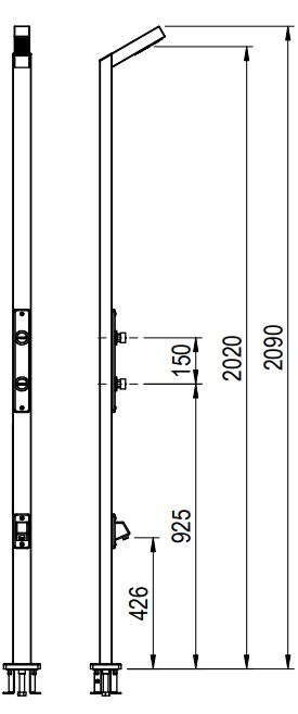 These showers come equipped with built-in flow limiters that conserve water, making them environmentally friendly. The showerhead is positioned 2 meters above the floor, and the unit is secured to the ground with screws and an anchoring fixture.
