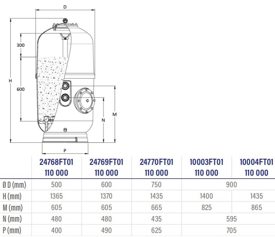 Brand: AstralPool,Lamp output, W: 75 Category: AstralPool Aster side mounted filter, high bed and with nozzle plate, output 2.5", Ø 900 mm, 31 m3/h