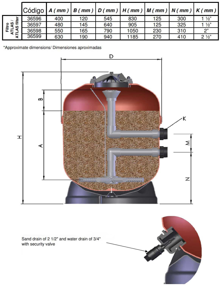 Brand: Hayward,Valve type: side mounted Category: AstralPool Atlas side mounted laminated filter, Ø 600 mm, 15 m3/h