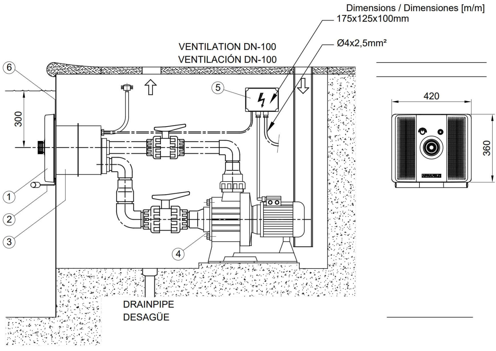 AstralPool Basic NL countercurrent nozzle is composed of faceplate in AISI-316 stainless steel polished in accordance with EN-13451 regulation. It has multi-directional water-air return nozzle and a suction capacity of 60 m3/h
