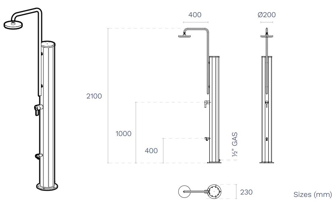 • Ease of maintenance: drainage to empty the shower in the winter to avoid wear and damage.