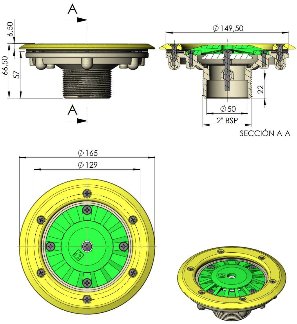 Brand: Behncke,Inlet type: vacuum,Material: Stainless steel Category: AstralPool floor return inlet for prefabricated pool, 2 inch, Light Grey
