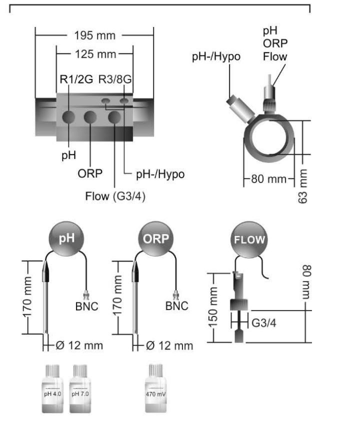This version comes with a comprehensive package that includes a built-in pH/ORP controller, a flow switch, pH/ORP sensors, and a sensor holder.