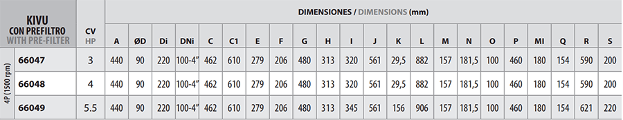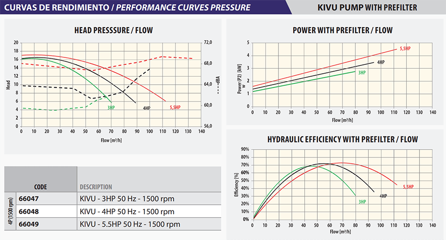 Technical Features AstralPool Kivu 3 HP self-priming Pump with Prefilter for Pools: