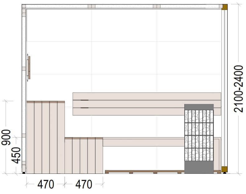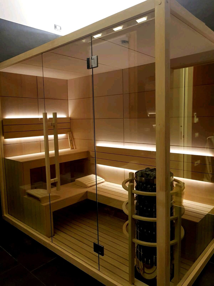 Constructed of high-quality Hemlock plywood panels that are 14 mm thick, the Lobos sauna is both durable and visually stunning. The benches are made of Abachi wood, which is known for its resistance to high humidity and heat, making it the perfect choice for a sauna environment.
