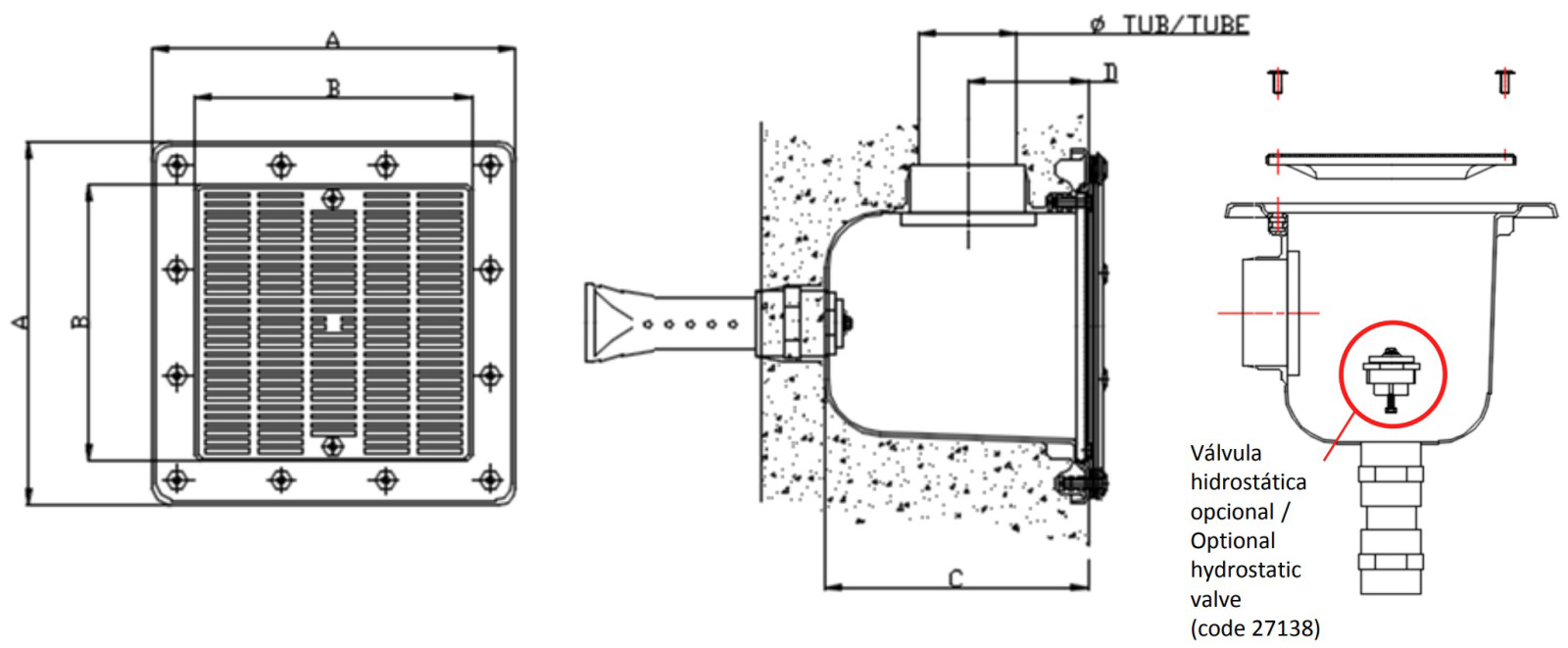 Brand: Aqua Industrial Group,Inlet mounting: wall,Material: Stainless steel Category: AstralPool main drain for concrete/prefabricated pool, Ø 75 mm, 16 m3/h