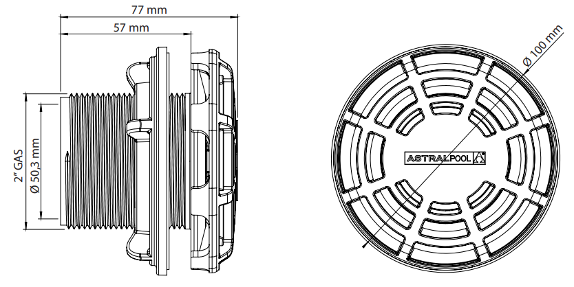 Brand: Aqua Industrial Group,Pool type: concrete,Material: ABS plastic Category: AstralPool Lateral return inlet nozzle for Polyester pools - Light Grey