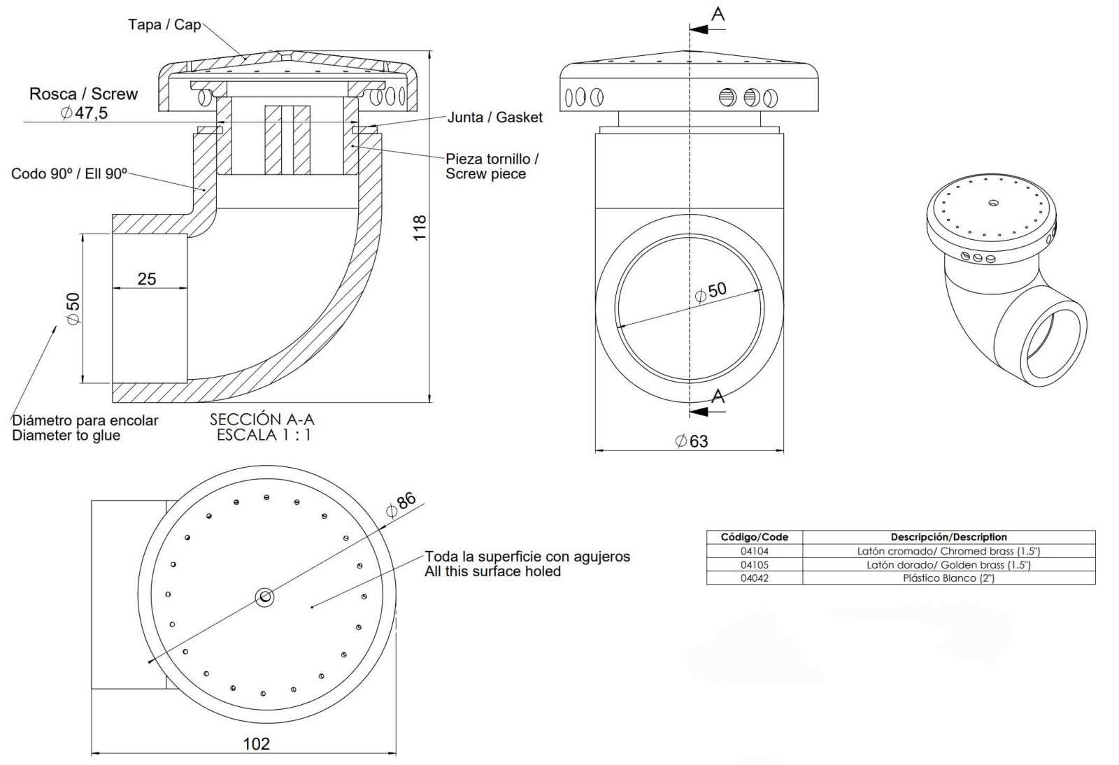 AstralPool main drains comes in many varieties and ensure that it is manufactured according to the current regulations standards. This antivortex grille variant, one of the available models, connects to 50 mm pipe and includes a built-in 90-degree elbow.