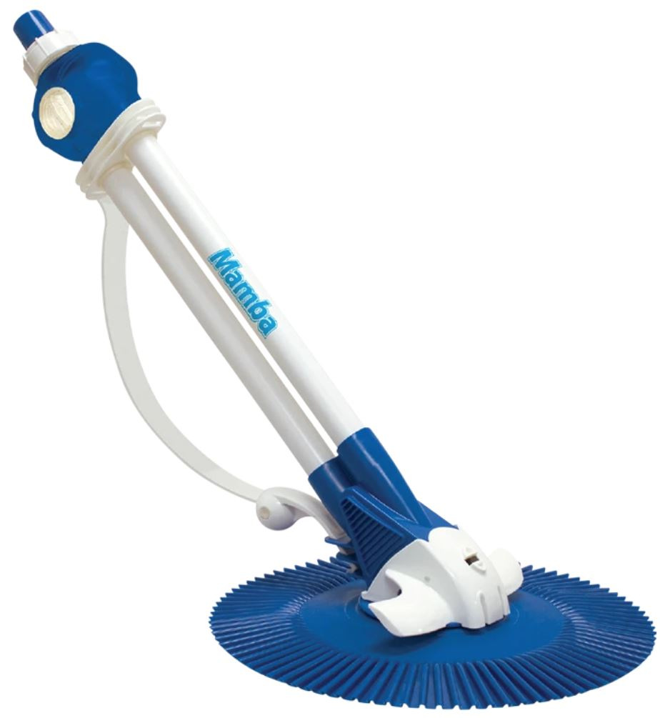 The AstralPool Mamba is a hydraulic suction cleaner that is designed to clean the floor and walls of a swimming pool. It is a highly effective pool cleaning solution that utilizes the pool's filtration system to collect debris in the pump pre-filter.