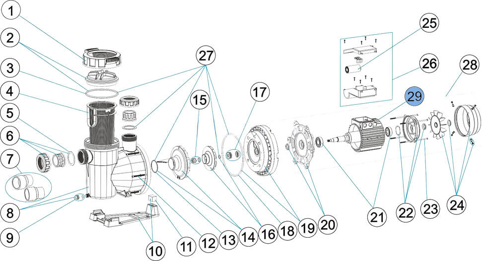 Type: Motor flange, cover, bearings, ties,Brand: AstralPool Category: AstralPool motor 2 HP III