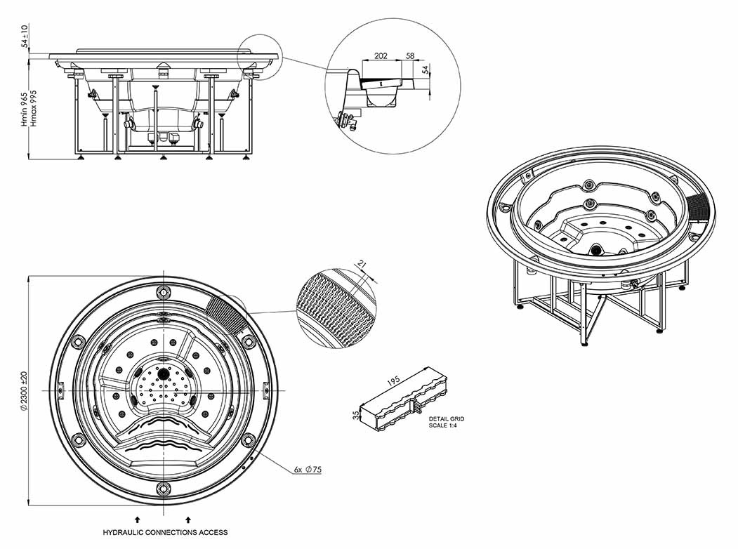 The AstralPool Odyssey round spa with overflow is a robust, expert spa. It is excellent for unwinding. This professional circular overflow spa has 10 nozzles, 8 strong water jets, and electromechanical control. The overflow design guarantees that the water level is maintained regardless of how many guests hop in and out. The sturdy acrylic shell is offered in a variety of pearlescent finishes.