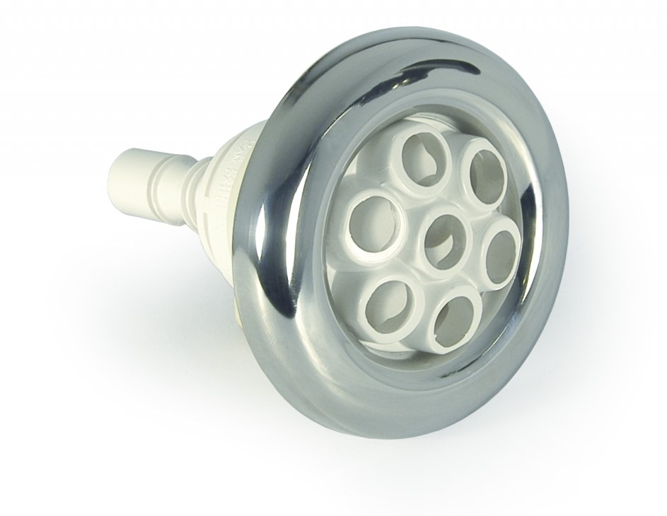 The AstralPool rotating beehive jet is made for your pool's hydromassage area. It has a stainless steel finish and works with railings that are 2 ½" wide. (63146).