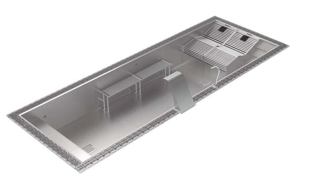 Pool constructed from a single piece of stainless steel that is 2 mm thick. It provides a filtering system equipped with skimmer and has strong LED projectors built in and a beautiful grille that is optionally available with a variety of finishes. Ready to connect hydraulic pre-installation is included.
