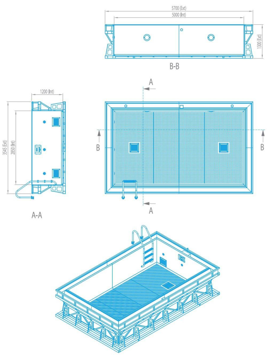Pool constructed from a single piece of stainless steel that is 2 mm thick. It provides a filtering system equipped with overflow and has strong LED projectors built in and a beautiful grille that is optionally available with a variety of finishes. Ready to connect hydraulic pre-installation is included. It incorporates a countercurrent device that is self-powered, making swimming in the pool more adaptable.