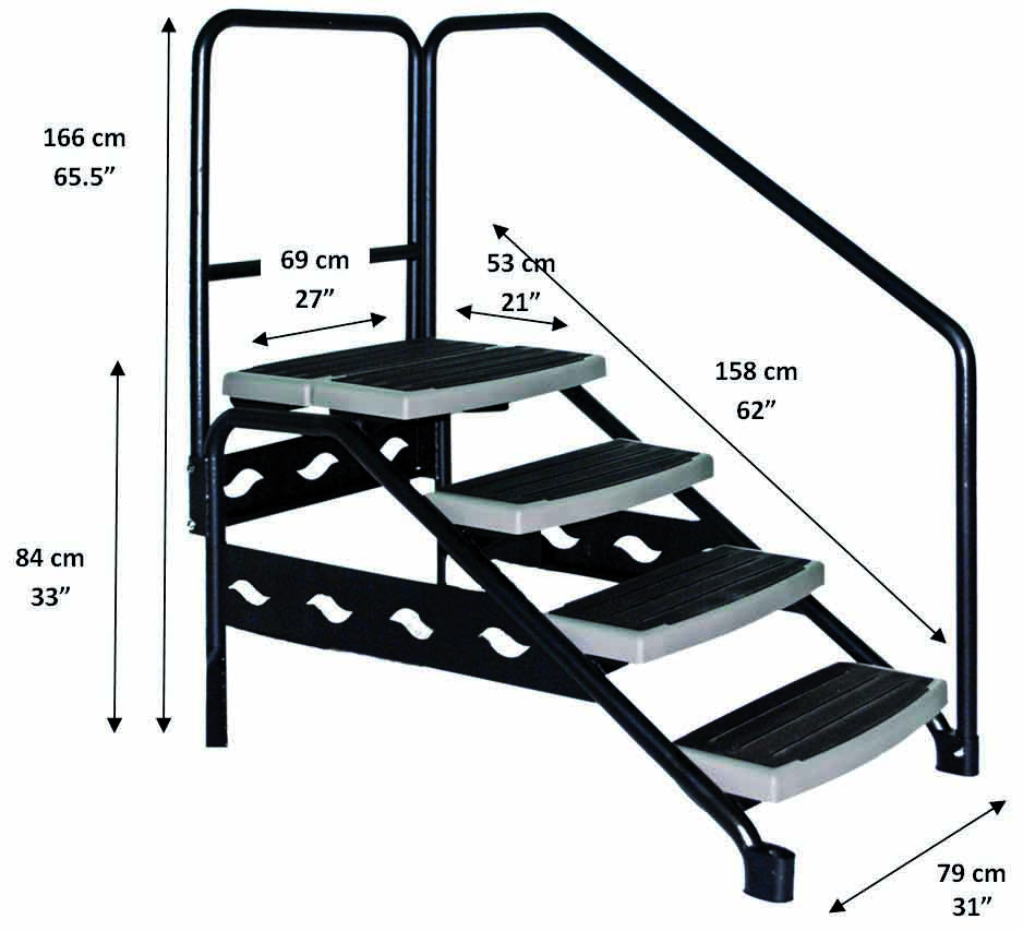 It offers a secure and lovely entrance for your pool spa. These novel stairs fit any size swimspa and are sturdy, dependable, and stylish. Both front and side access are accommodated by these steps. The top of the double-treaded platform on its four steps has a handrail for secure access. The stairs can be quickly and easily assembled after being disassembled for simple sipping.