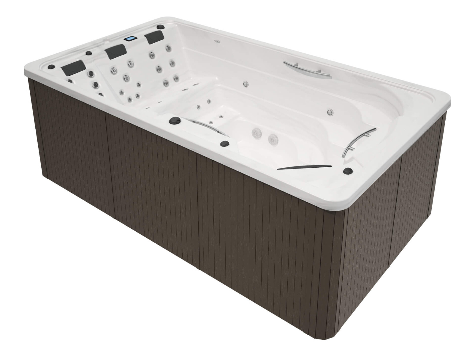 With 4 strong water jets that enable you to swim continuously for the duration of your workout or walk against the current, there is space in this year-round swimming pool to practice swimming against the current. Before or after utilizing the lounger or two seats, you can unwind. You can also use the side vertical massage column. It features two steel bars for assistance during aquatic fitness routines. With countless options, a portable swim spa There are countless ways to maximize the use of your swimspa, and the Swimspa Creta is no exception.