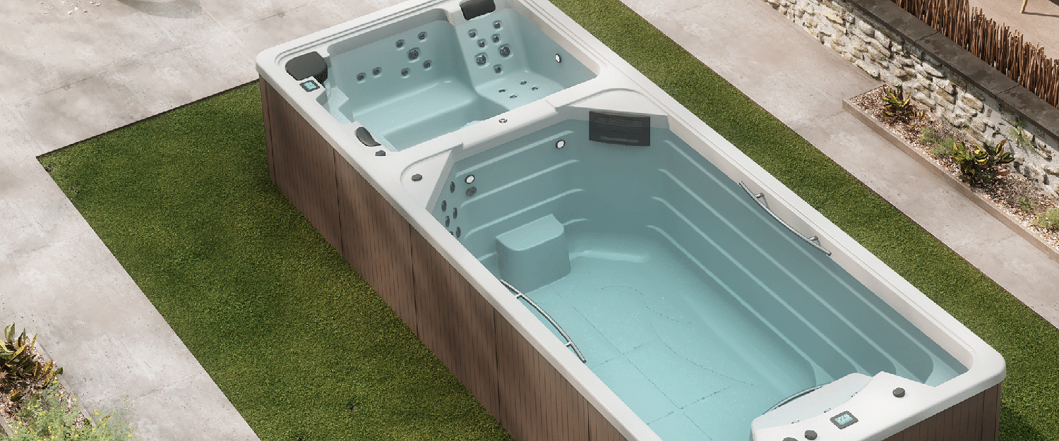 Two completely different locations, so some of you can enjoy the "swim" version while the others enjoy the "hot tub" version; or, to allow physical activity and complete relaxation in one location, counter-current swimming or aqua fitness next to hydromassages. Go swimming or unwind. Because physical training may demand a much lower temperature than hydromassage, the Swimspa Duo is made with each section's water having its own temperature. As a result, one of you can swim uninterruptedly thanks to the five counter-current swimming jets, and the rest of your family or friends can relax and unwind with a great stress-relieving or lipoactive massage in one of the ergonomic seats or a comfortable lounger (all with headrests) in the hydrotherapy area.