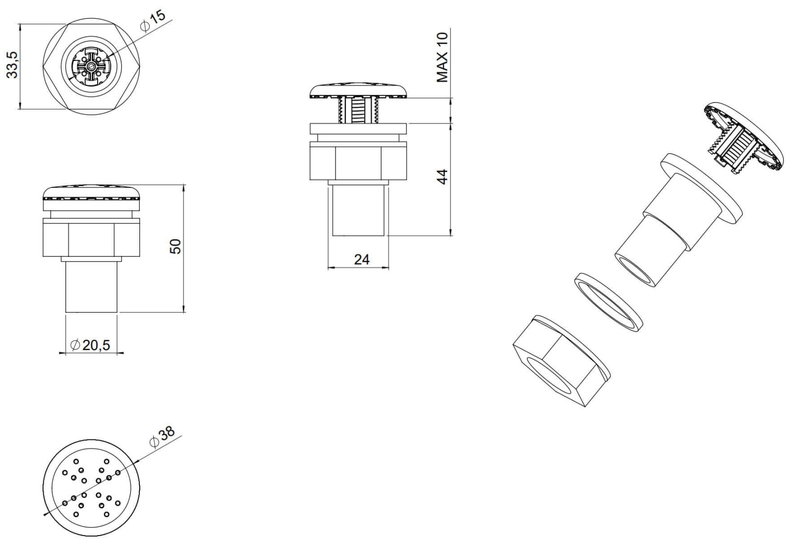 AtecPool adjustable jet for spa, Ø50 x 50 mm, ABS AtecPool adjustable jet for spa, Ø50 x 50 mm, ABS