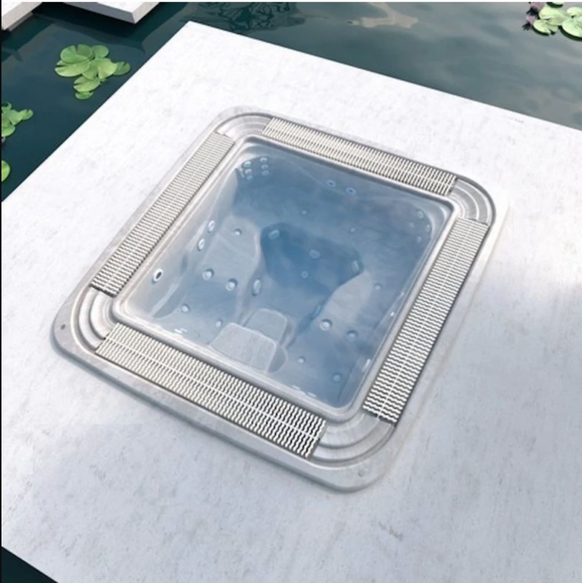 Brand: Behncke,Type: front plate,Mounting: integrated unit Category: AstralPool Verona overflow spa with led spotlight and cover, 228 x 228 cm, 5 seats