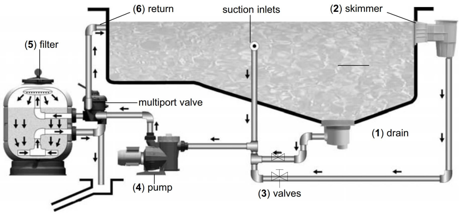 When the selection valve is in this position, water from the pump can be directed straight to the pool, bypassing the filter's interior.