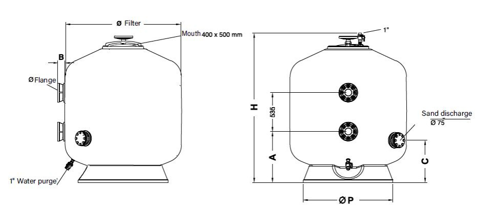 Brand: Cepex Category: AstralPool Vic side mounted filter, 1800 mm, 50 m3/h