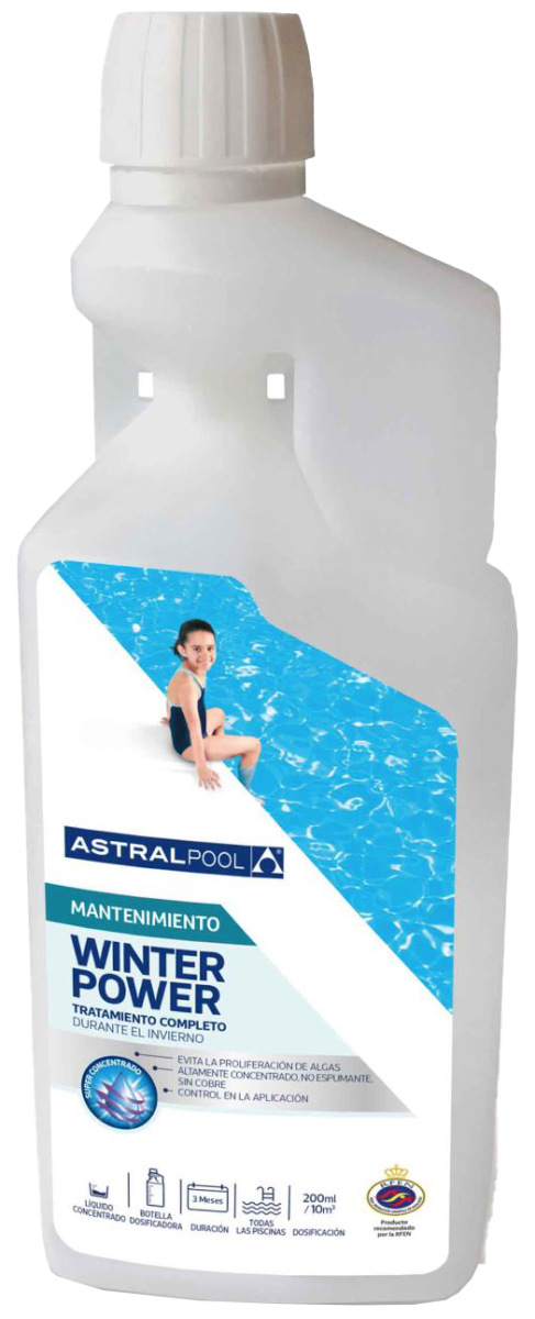 AstralPool Winterizer Power liquid is the appropriate option for liner and polyester pool owners who wish to prepare their pools for the winter months. This unique solution is designed to keep your pool in great shape and ready for use when the weather warms up again. Winterizer concentrate, specially created for liner and polyester pools that will maintain your pool water in peak condition during the winter by preventing the creation of algae and bacteria. It conserves water by being usable from one season to the next. The unique dosing cap allows you to add just the amount of product you require, allowing you to save money and use it more efficiently. Before discontinuing routine maintenance treatment at the end of the bathing season, execute a super-chlorination with dichlor granules.