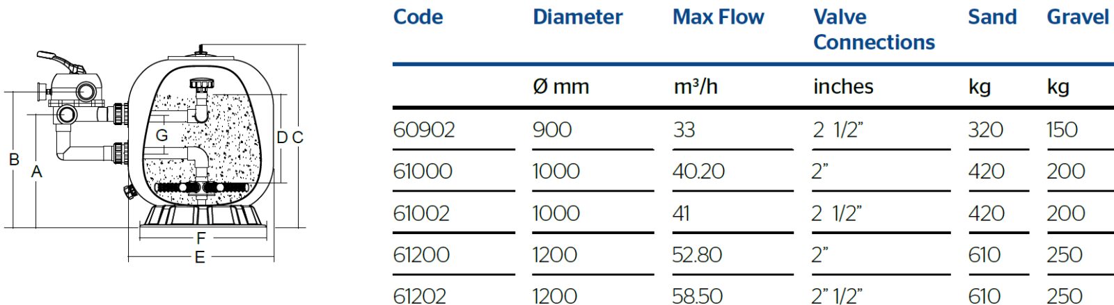 NOTE: The valve and sand for side mounted filters are sold separately.