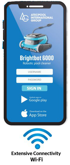 The Atecpool Bot App enables remote operation of the Brightbot 6000.The app offers scheduled cleaning (with a timer and delay option), automation mode, and the Tap 'n' Collect features. In addition to the clever one-tap cleaning, the lag-free manual mode can also be used to clean your pool.