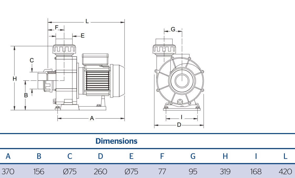 • The impeller of the pump is made from Noryl, a high-performance engineering thermoplastic known for its excellent chemical resistance and durability. The Noryl impeller enables efficient water circulation, allowing for effective pool maintenance and operation.