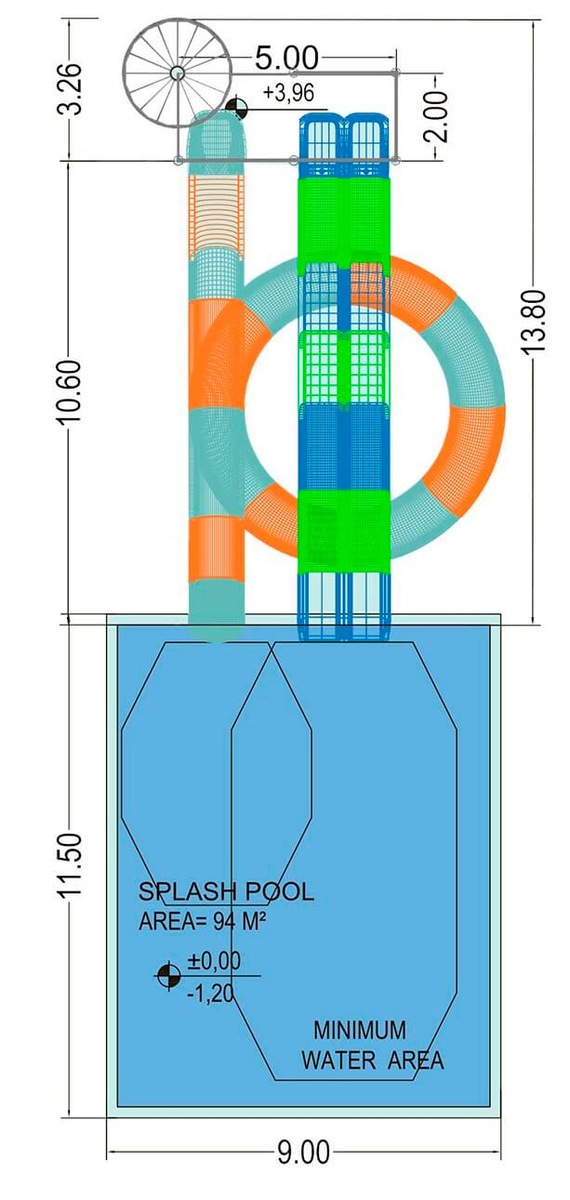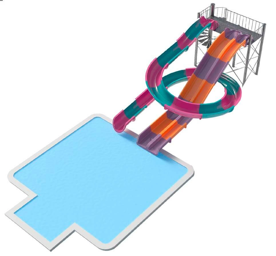 If it is not available to build it, for example, the area doesn’t have enough space or no reason to do it, for example, if it is just 1 slide, we use dry finish. It is like additional flumes of the water slide, there are swimmers stops.