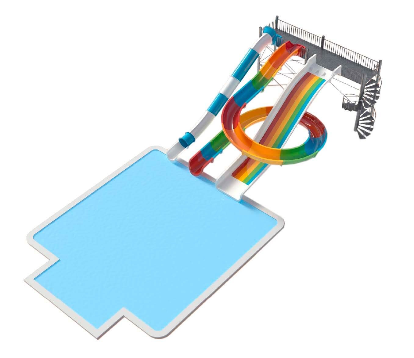Hotels often choose a complex of slides with one start grounding, but with different heights, in order to reach a large audience.