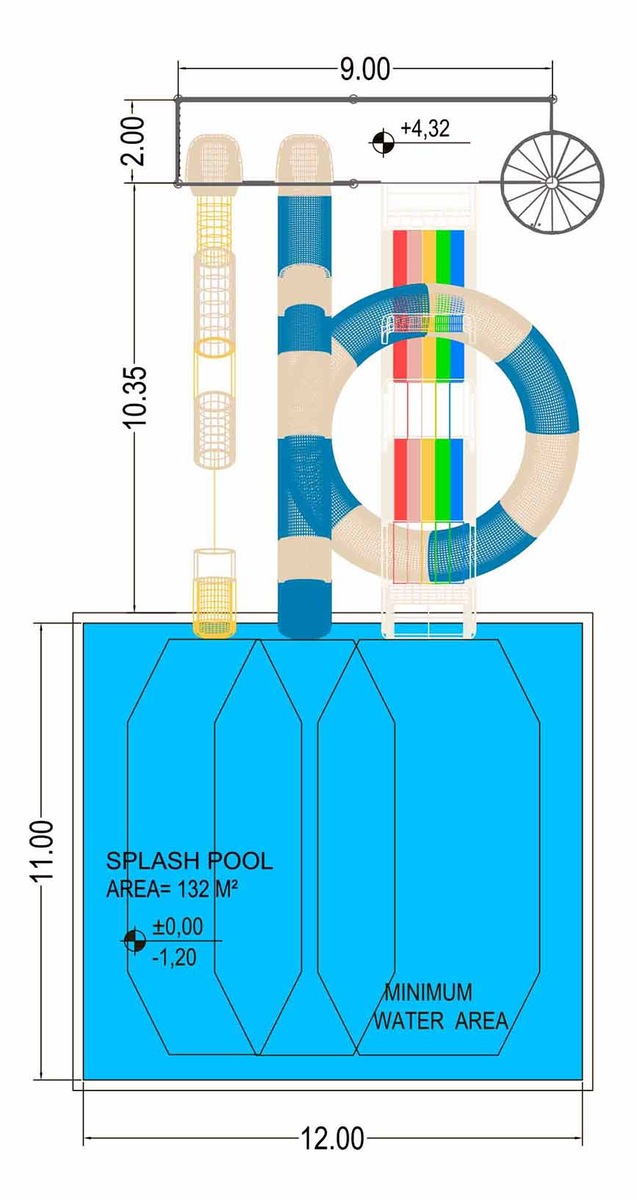 If it is not available to build it, for example, the area doesn’t have enough space or no reason to do it, for example, if it is just 1 slide, we use dry finish. It is like additional flumes of the water slide, there are swimmers stops.