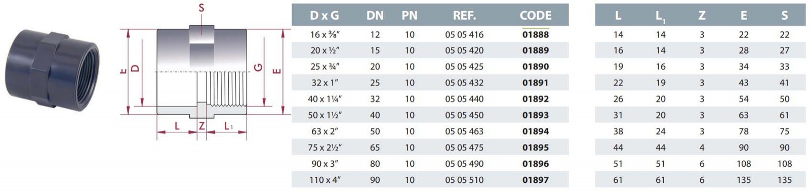 Brand: Hexagone Manufacture,Type: Manual,Cleaning mode: Floor,Pool length, m: 15 Category: Cepex PVC-U coupling with female thread 63 mm FT 2”