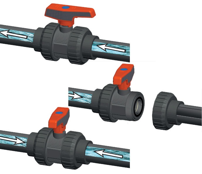 PVC-U true union ball valves are designed for shut-off and opening the pipeline.