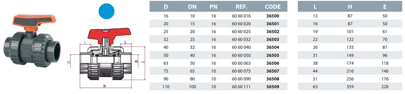 Brand: Aqua Industrial Group Category: Cepex PVC-U true union ball valve 63 mm