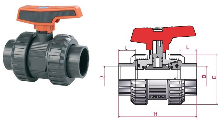 PVC-U true union ball valves are designed for shut-off and opening the pipeline.