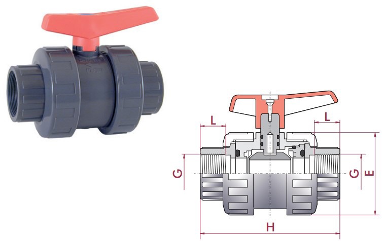 Type: PVC coupling, unions, spigot connections,Brand: Cepex ,Connection: 3/4 '' Category: Cepex PVC-U true union ball valve with female thread 1 1/2”