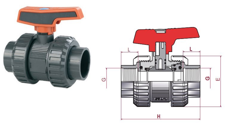PVC-U true union ball valves are designed for shut-off and opening the pipeline.
