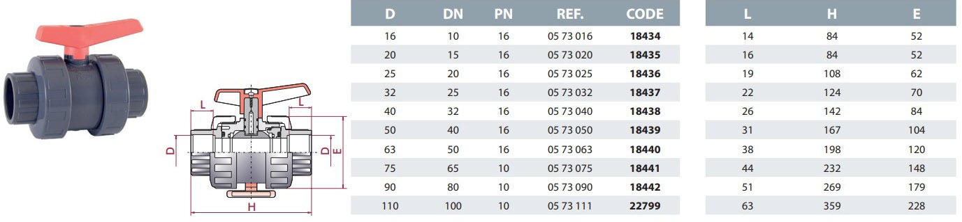 PVC-U true union ball valves are designed for shut-off and opening the pipeline.