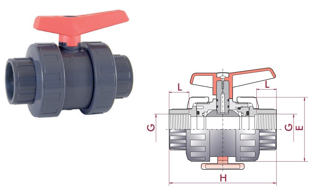 Type: PVC end caps & flanges,Brand: Cepex Category: Cepex PVC-U true union ball valve with seating joints PFTE, female tread 2 1/2''