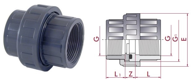 Brand: Aqua Industrial Group Category: Cepex PVC-U union with female thread 50 mm X 1 1/2''
