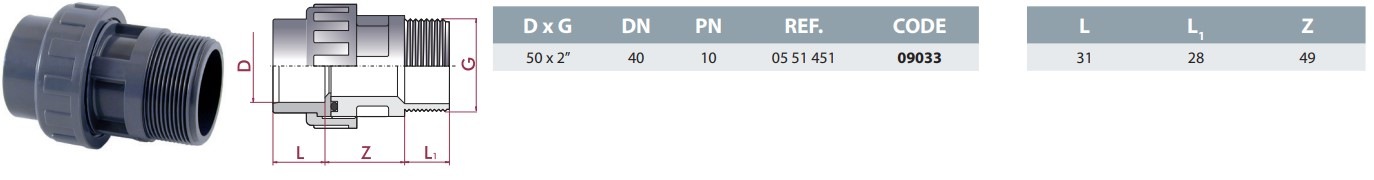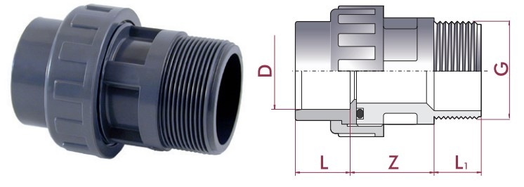 Brand: Dryden Aqua Category: Cepex PVC-U union with O-ring, male thread 50 mm X 2''