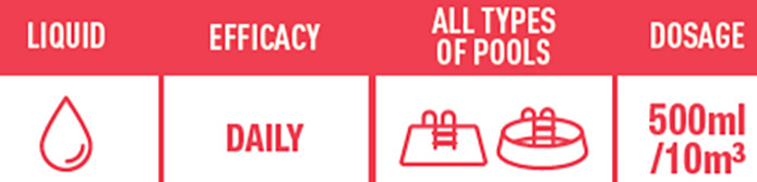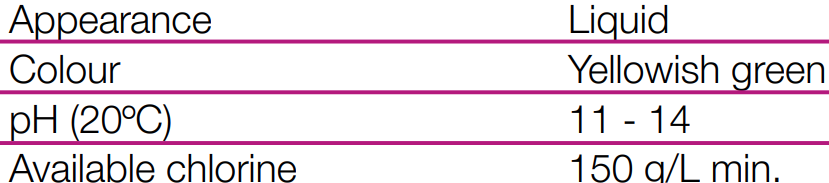 Liquid chlorine for continuous water disinfection. The water contains unstabilized chlorine and no cyanuric acid. Suitable for shock treatments and general upkeep. A liquid substance suitable for disinfecting swimming pools, spas, industrial waters, and so on. It is possible to prevent and remove germs, viruses, and microorganisms in general, as well as the appearance of algae, by using the product.
