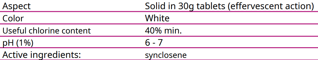 Maintenance: After adjusting the pH of the water, add 1 tablet of product per 10 m3 of water daily.