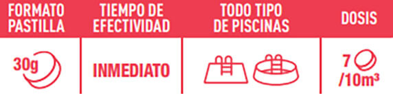 Maintenance: After adjusting the pH of the water, add 1 tablet of product per 10 m3 of water daily.