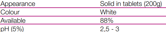 Note: After we have adjusted the pH of the water, add 1 tablet of CTX342 Multi-action 250G (without copper) for every 25 m3 of water every 7-10 days.