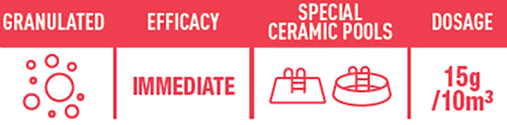 Note: After adjusting the pH of the water, add 1 or 2 grammes of product per m3 of water daily.