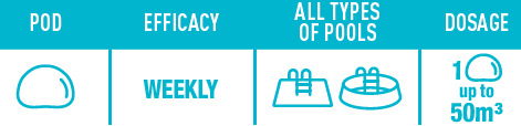 Each week, add 1 Care Pod of product per 50 m3 of water.