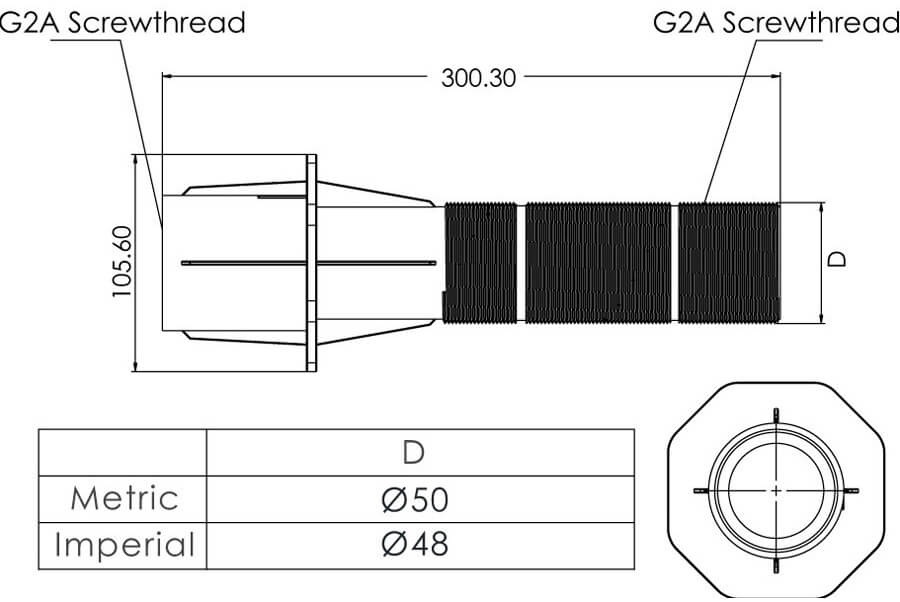 AstralPool ABS wall conduit for concrete pools has a range of 300 mm conduits for Ø 2" inlets and multi-flow, which can be shortened to fit different pool walls. Several holes are drilled in the ribs of the end plates, which makes assembling the wall conduit easier.