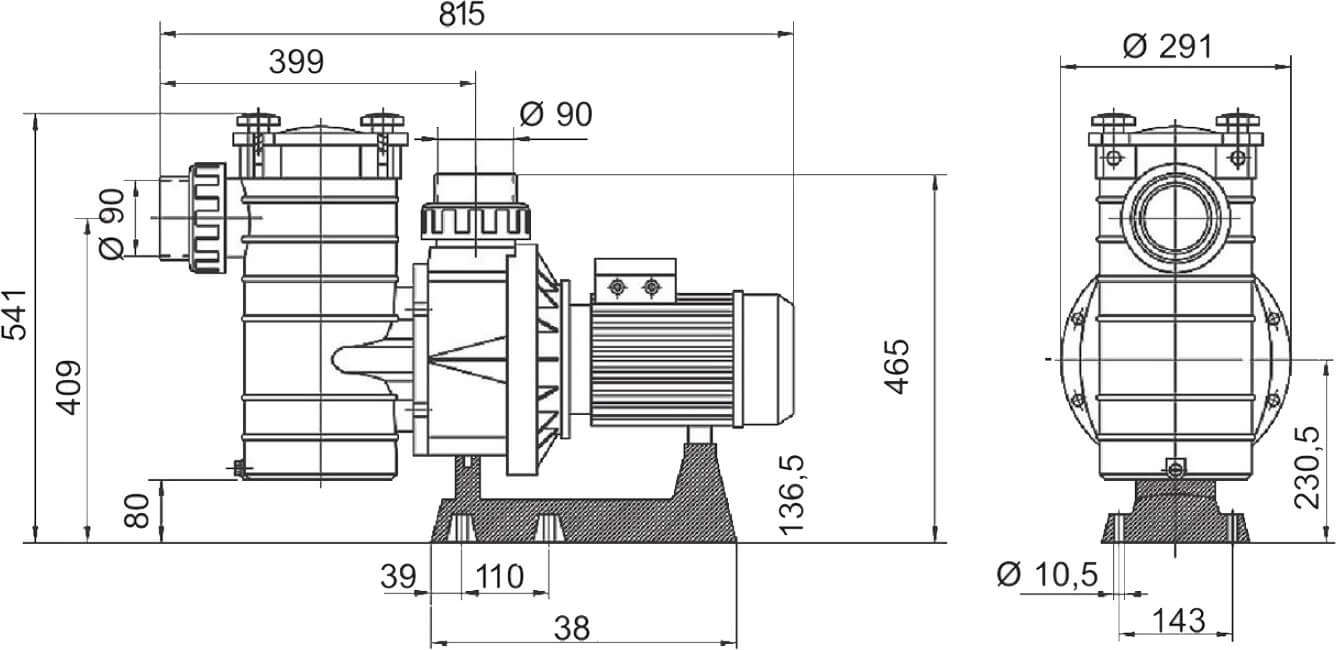 Brand: SPECK Pumpen,Voltage, V: 400,Power consumption, kW: 3,Flow rate, m3/h: 60 Category: Hayward KPA 550 80 m3/h pump for the swimming pool, 5.5 HP